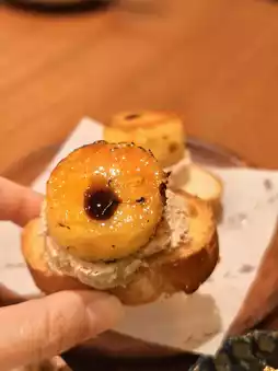 The caramel pineapple π foie gras toastβs foie gras mousse was smooth and delicate. The juicy caramel pineapple made the foie gras feel less greasy, making it a perfect match.
