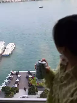 Step into the room and a vast sea view unfolds before your eyes—the shimmering waters of Victoria Harbour and the distant city skyline, so beautiful it feels unreal. During the day, sunlight sparkles on the sea; at night, the lights shine brilliantly and dazzlingly.