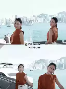 📍Victoria Harbour, you can walk along here for a long time. It’s next to Avenue of Stars, you can see the opposite side but it’s backlit a bit. If your camera has a flash, turn it on for glowing skin