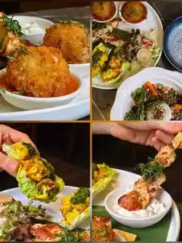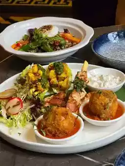 Another platter has 3 appetizers: the chicken skewer is grilled just right and not dry at all, the cauliflower is roasted with spices and tastes very fragrant, and the most special is the fried risotto ball, crispy on the outside and soft inside.