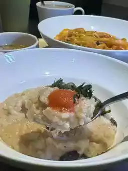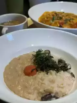 The risotto is full of cheese and creamy milk flavor, cooked to a perfect soft yet firm texture. At the bottom, there are shiitake mushrooms paired with savory mentaiko, making the whole risotto taste excellent👍