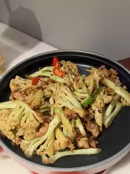 - I really like this stir-fry similar to pickled chili style. It doesn’t taste spicy but is very flavorful. The cauliflower has a slight pork lard flavor from the pork, very tasty ❤️