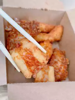 The platter features two pieces of each snack, perfect for sharing 👍. The fried items are crispy and not greasy, with the sesame chicken wings being particularly flavorful and crunchy 🍤. The shrimp toast is also impressive, especially when dipped in mayonnaise for an indulgent treat 🤤.
