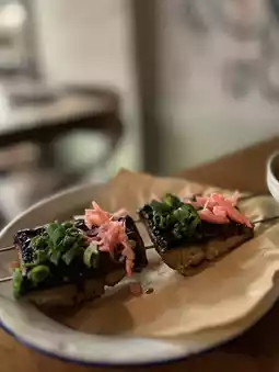 Grilled oysters 🦪 served with watercress and aged kidney sauce were very unique. The oysters were juicy and sweet, with a flavor so fresh and delicious it’s unforgettable.