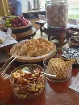 I took photos of every dessert! The apple tart I used to crave has been replaced by a pear almond tart this time. The pear flavor is super strong, refreshing and not too sweet—I devoured two pieces in one go! There was also a jar labeled “Melon Salad with Passion Fruit Orange Tea,” which isn’t really tea but a bowl of tangy and sweet fruit that’s super appetizing.