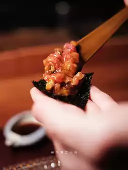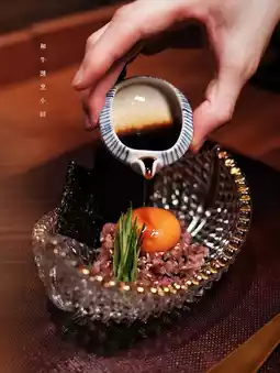 Lightly charcoal-grilled lean wagyu, a rare cut, retains tender meat with a smoky aroma. Mixed with top-quality Japanese marinated egg yolk, it enhances the natural sweetness and buttery fragrance of the beef. The fat is fragrant and the umami overflows, making it very appetizing🌟.