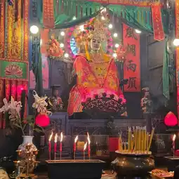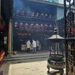 Tin Hau Temple is located in the Yau Ma Tei district of Hong Kong. It is popular for worshippers seeking blessings for success in business, as this community was once adjacent to the pier. Although land reclamation has moved the temple away from the shoreline, fishermen still flock here to pay homage to the goddess of the sea.