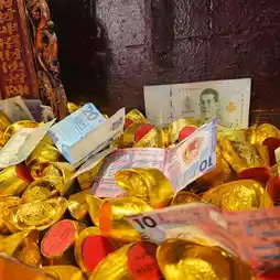 🙏 Offerings come in small and large sets according to your budget, and you can ask the temple staff for guidance on how to worship. There are red incense sticks, circular incense coils, gold ingots for worshipping the God of Wealth (Cai Shen Ye) to enhance prosperity and wealth, and golden shovels for praying for sons and daughters.