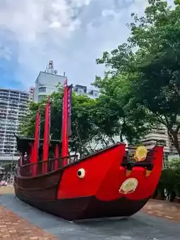 Surrounding Scenery: Located on the waterfront promenade near the sea, enjoy the sea breeze and views, and take photos with the Red-Headed Boat Pavilion for a relaxing and picturesque experience.