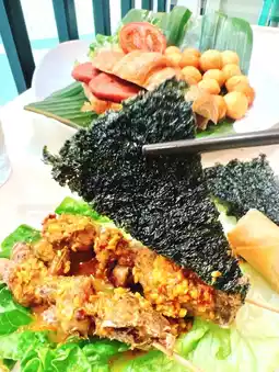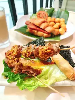Satay skewers, fried seaweed, and Yu-le spring rolls