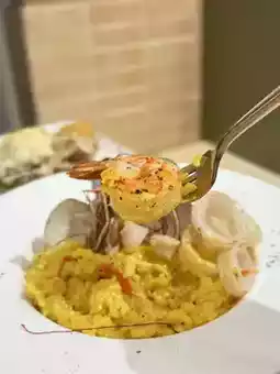 Golden sauce, rice grains full and plump, sprinkled with saffron on top, looks great👍🏻
