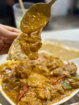 The Thai pancake is crispy on the outside and soft inside, with many crispy layers and a strong butter aroma 🫓. Dipping it in curry sauce makes the flavor even richer 🤤.