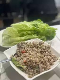 The minced meat is richly spiced and a good mix of lean and fat 🥬, wrapped in crisp lettuce. The meat is flavorful and textured, fresh and not greasy, with a slight spiciness that is very tasty.