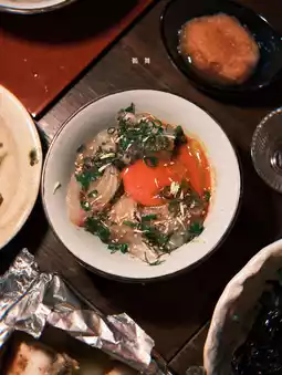 🥢 Oita Ryukyu Marinated Sashimi: sashimi mixed with sauce made from sweet soy sauce, mirin, sake, and sesame