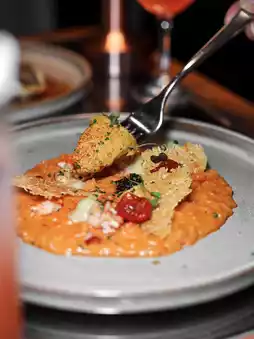 The lobster bisque is rich and flavorful, made with brandy for a subtle alcoholic aroma✨