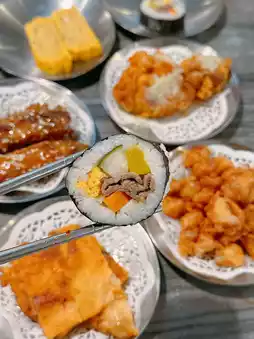There are over 10 kinds of Korean snacks made to order with good quality. The Korean pancakes and seaweed rice rolls are freshly made and taste great🐔. I tried the cheese fried chicken sprinkled with rich cheese powder, which was crispy🍗. The kimchi pancake was cooked to a smoky, chewy, and crispy perfection. Also, the sweet Korean yuzu single-bone chicken wings and rolled omelet were quite good🍳.