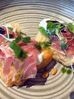 The lunch set is more cost-effective because it includes an appetizer option, such as Parma ham, buffalo mozzarella, and arugula with toast. The small portion was nice, but the toast was slightly lacking in crispiness.