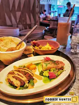 🐟 The other main dish, "Seven-Spice Salmon Tabbouleh Salad," is very tasty. The salmon is pan-seared to a fragrant crisp, the seven spices are prominent, paired with garlic yogurt, walnuts, and tabbouleh salad, creating a rich and healthy texture that is very satisfying!