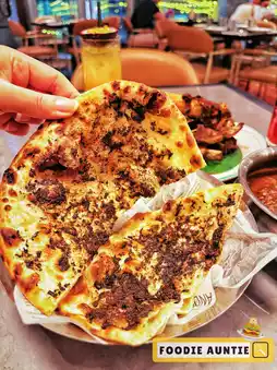 🍄 When eating curry, you must order NAAN. We chose "Black truffle Italian cheese" and "Garlic coriander" flavors! These creative new tastes break tradition—the former is full of Italian soft cheese and black truffle sauce; the latter mixes chopped coriander with fragrant garlic, baked until slightly charred and brushed with butter. Super aromatic!