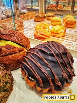 💜 Staff recommended the "Purple Rice Oat Tart," the tart crust is very crispy, definitely a good recommendation. The "Hazelnut Chocolate Puff" is so indulgent, a big piece wrapped in chocolate. The "Charcoal Roasted Coffee Pineapple Bun" has a coffee aroma, with butter bursting in the middle. Next time I pass by, I’ll try the other flavors.