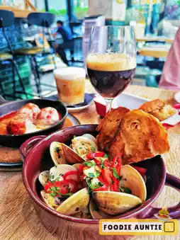 🍲 Seafood lovers must try the "White Wine Clams," incredibly fragrant! The clams are plump, and the lemon white wine sauce brings out the freshness. The best part is soaking up all the essence with a piece of herb bread, bursting with buttery aroma!