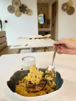 A delightful surprise, with two large pieces of double-layer foie gras, pan-seared to a crispy outside and tender inside, bursting with rich aroma, giving a high-end French fine dining feel. The smooth foie gras combined with every bite of truffle mushroom rice is full of fragrant aroma!