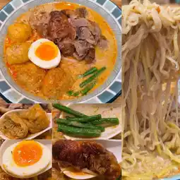 This bowl of Nyonya Roasted Duck Laksa Mix is especially generous, with 8 large pieces of roasted duck. Each piece is roasted to a fragrant perfection, and the duck meat is not tough. It also includes half a soft-boiled egg, 4 pieces of tofu puffs, long beans, and bean sprouts. The mix means thick yellow noodles combined with thin vermicelli, all soaked in laksa sauce. The laksa soup base is very aromatic and not too spicy, really good!