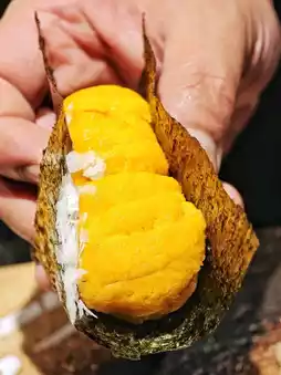 πΈ Hokkaido red sea urchin hand roll with sea salt