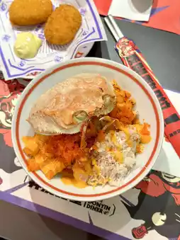 This bowl includes crab claws, crab meat, crab roe, crab eggs, and crab sticks—truly packed with crab! Each ingredient is served in generous portions. When served, the bowl is covered with a whole crab shell, making for a unique presentation. You can choose your sauce; I went with sea urchin sauce, which made the overall flavor very fresh and rich.