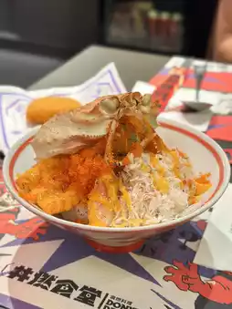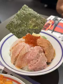 Choose freely from over 30 ingredients. The cheapest option at $68 lets you pick four toppings, plus you can select the rice base, searing, and sauce, giving you great flexibility! Some toppings require an extra charge. I ordered seared salmon, red shrimp, toro tartare, salmon tartare, and salmon roe for under $100.