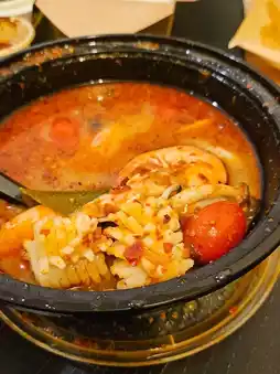 Besides pan-fried pancakes, the restaurant also offers various Thai main dishes and snacks at affordable prices. Another must-try is — the meat is juicy, the shredded meat tender, combined with a special volcanic sauce, creating rich layers of flavor that are super tasty! 😋