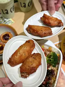 The roast chicken is outstanding 😍. The aroma hits you as soon as it's served! Tearing it apart by hand reveals juicy meat, with crispy skin and tender flesh. Adding spicy powder makes it even more flavorful 😋