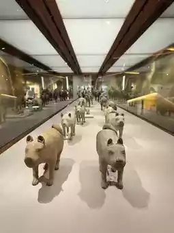 The entire exhibition showcases multiple authentic Terracotta Warriors, including the famous General figurine and Kneeling Archer figurine. There are also rarer animal figurines: six types of animals considered to hold noble status at the time, two of each kind, totaling 12 animals arranged in neat formation, creating a spectacular sight!