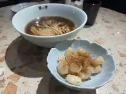 The soup noodles use thin noodles, with a smooth texture. The broth is darker in color but not too salty.