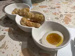 The three small dishes in the set are soft-boiled egg, crispy pork, and fried crab roe wontons. Eating less but tasting more, I especially like the fried crab roe wontons, which have thin and crispy wrappers.