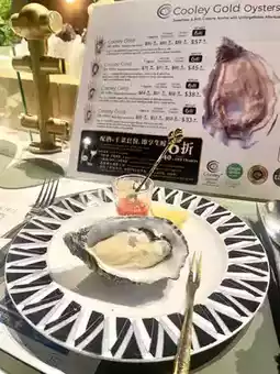 I arranged to meet a friend for food near Hysan, searching floor by floor downwards. At B2/F, I saw a very eye-catching decoration covered with green plants and an oval-shaped bar counter. It turned out to be a restaurant specializing in oysters and Western cuisine. They have a Serviced Dining Area, and I personally found it quite special to watch the chefs prepare and handle fresh oysters. The bar counter was surrounded by oysters on display, which was pretty nice, so I decided to sit at the countertop seats!