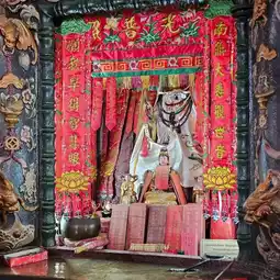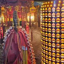at this temple, inspiring the locals to have faith and unite in building the Lotus Flower Hall, decorated with lotus lanterns as a form of worship and reverence. There is also the deity Hao Zi Ya, or the Hell Line God, known for his filial piety and dressed in rough cloth, a figure not well known to Thais. However, this deity is full of yin energy, which is famous for wealth and money, making it perfect for those who enjoy betting and gambling.