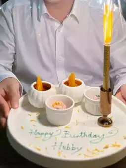 Finally, of course, was the surprise dessert. The dessert even had a birthday message stand, and the candle was very unique. The whole experience was full of surprises and ceremony from start to finish.
