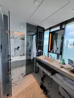 The room design is super classy—minimalist, stylish, yet cozy. The huge floor-to-ceiling window became a natural picture frame. Even in the bathroom, you can soak in the tub while watching the sea 🛁 Instantly felt this trip was worth every penny! I strongly suggest you sweet-talk the front desk for an upgrade when you check in. Who knows, maybe your luck will explode~ This experience is definitely top-tier among Hong Kong hotels. Next time I come to Hong Kong, this place is locked in!!