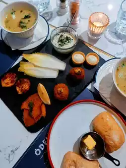 🇫🇷🗼 Odelice! in Tsim Sha Tsui! Located on the 4th floor of The ONE mall, it features a blue and white color scheme that creates a relaxed Parisian bistro atmosphere. The open design and European-style decor make the environment casual and perfect for photos. The staff are friendly, witty, and attentive, making it an excellent choice to enjoy French flavors in Tsim Sha Tsui. Recommended dinner set for two (HK$538): includes soup, bread, two petits plats, and two main courses.