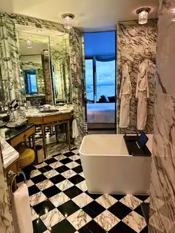 ▸ Deep soaking tub to enjoy the IFC light show while bathing