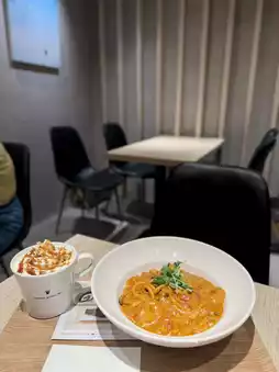 As for the shrimp tomato soy milk udon, the tomato broth is rich and smooth with the aroma of soy milk, combined with sweet fresh shrimp, resulting in a harmonious taste. Tossing the udon in the sauce made us eat a lot without realizing it 🥴