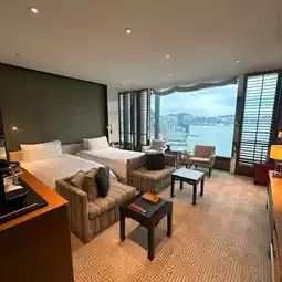 My room was a masterclass in modern refinement: warm timber tones, bespoke furnishings, handpicked art pieces, and expansive windows framing the glittering harbor and Hong Kong skyline. Every element—from the custom scent to the plush bed linens and marble bathroom—was thoughtfully chosen to evoke comfort, elegance, and individuality. It felt more like a luxury apartment than a hotel room.