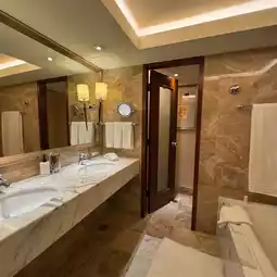 This time I stayed in a sea view room, and the moment I opened the window, I was blown away by the stunning Victoria Harbour view! The panoramic floor-to-ceiling windows capture the bustling harbor perfectly. During the day, you can see boats passing by; at night, the neon lights sparkle—every photo looks like a masterpiece. The room size is quite spacious by Hong Kong hotel standards, the bedding is super soft, and they thoughtfully prepared welcome fruit and a handwritten card—full of attention to detail. The bathroom has a separate wet and dry area, with a huge bathtub overlooking the sea view, making bath time incredibly soothing!