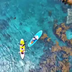 Paddle through the seaweed maze; the water is so clear it feels like floating in the sky.