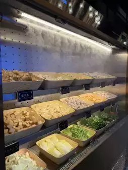 The food area also has a variety of hot pot ingredients (vegetables, meatballs), Taiwanese snacks, ice cream, tofu pudding, taro balls + toppings 👍🏻