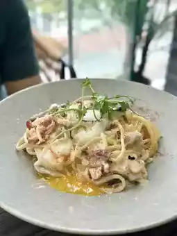 🍝 Onsen Egg Smoked Pork Belly Carbonara Pasta $108