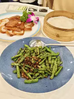 The green beans have a slightly charred skin, crisp and tasty, stir-fried with shallots, minced pork, and garlic, giving off a fragrant aroma with distinct layers of flavor, perfect with rice.