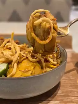 That day, I came alone to Ah Xian Thai at K11 Art Mall for afternoon tea. The restaurant seems to have been renovated recently, with a new white pastoral style, creating an elegant and comfortable environment. I chose the chicken curry noodles; there was quite a bit of chicken, the meat was tender and smooth, and the flat noodles were pretty good. I also sipped the soup, which had a rich coconut aroma and complex layers, but it was quite spicy, so friends who can't handle spice should be careful.