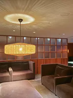 Help! The Cathay Pier Lounge turns waiting for your flight into an immersive vacation experience 🌿 The moment you step in, the tea room design captivates you completely. The suspended circular lights look like stars fallen to earth, casting soft light on the emerald green walls. The interplay of light and shadow is breathtaking!